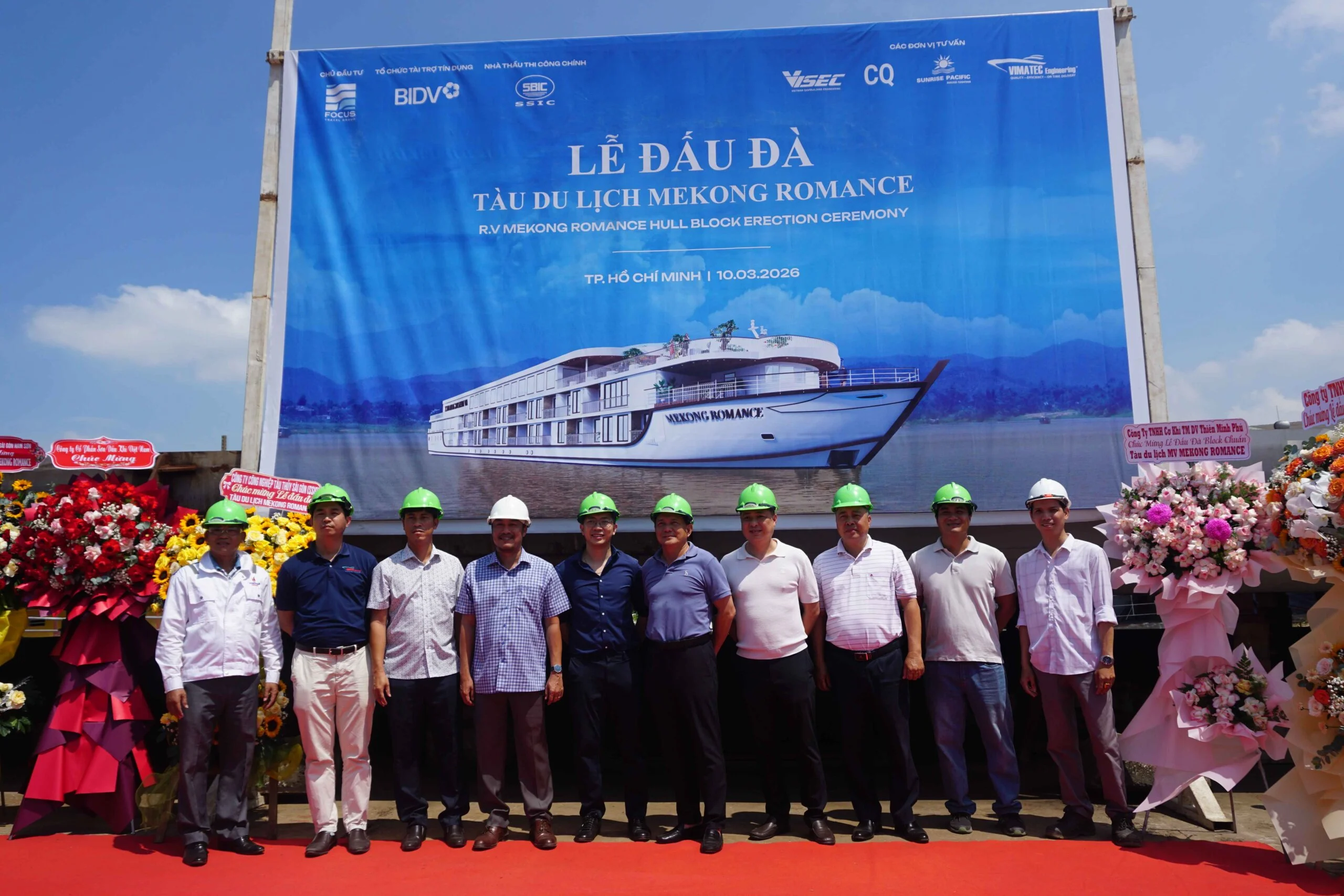 On the morning of March 10, the keel-laying ceremony for the RV Mekong Romance cruise vessel was solemnly held at the SSIC Shipyard, marking an important milestone in the development of the luxury Mekong River cruise project.